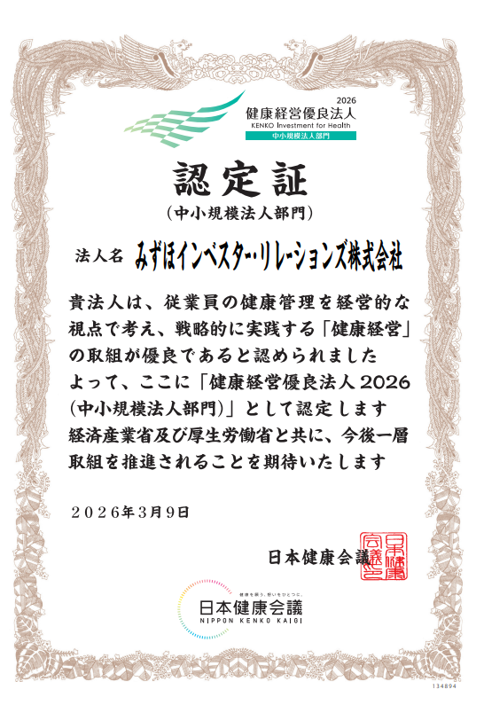お知らせ健康経営優良法人2026(中小規模法人部門)の認定を取得